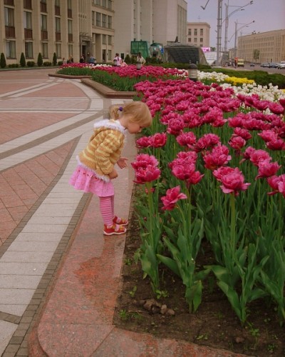 Girl and the tulips