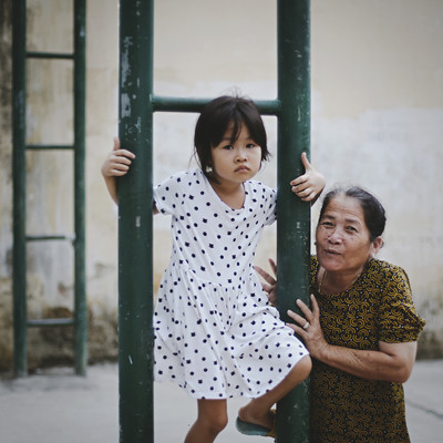 Vietnameese girl with her grandmother